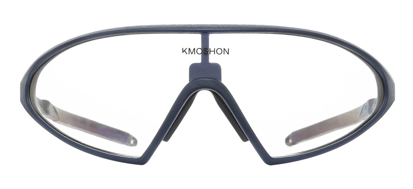 Our inaugural model - Motion Devotion - features a full-rim base six frame which tightly hugs the head. The glasses stay firmly in place thanks to adjustable rubber nose pads and temple tips which provide a solid grip even when subject to rapid and erratic movements.